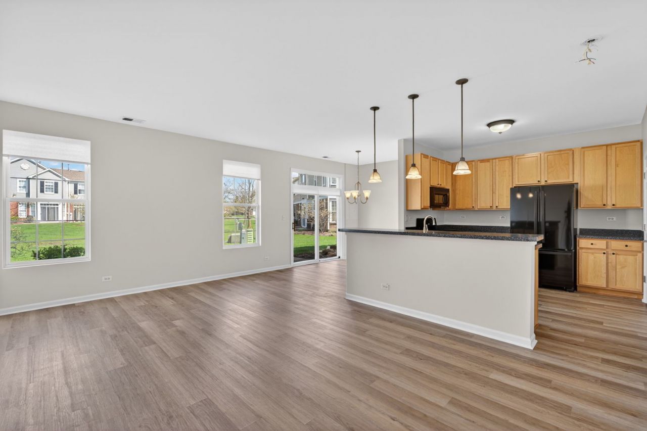 Step into this beautifully refreshed 3-bedroom, 2.5-bath townhouse with a 2-car garage. An estate sale that truly stands out from the rest. Offered in AS IS condition; you'll be pleasantly surprised by the thoughtful updates and care poured into preparing this home for its next chapter. The entire unit has been freshly painted, including doors and trims, and features brand new flooring throughout, along with a new dishwasher and refrigerator, updated plumbing fixtures, vanity tops and toilets, new ceiling fans, and a new entrance screen door, making this home truly move-in ready. The open concept main floor is filled with natural light, creating a warm and inviting atmosphere. The kitchen is designed for both function and connection, featuring an island/breakfast bar with the sink perfectly positioned to overlook the family room. Adjacent table space includes a sliding glass door that opens to a private patio, where open green space provides a peaceful buffer between buildings. Upstairs, the spacious primary suite offers double walk-in closets and a private bath with a tub/shower combination and double sinks. Two additional generously sized bedrooms include ample storage. Bedroom two with a walk-in closet and bedroom three with a wall closet. They share a hall bathroom complete with a new vanity and tub/shower combo. Convenient second floor laundry adds to the home's practical layout. Ideally located near walking and biking trails, shopping, and everyday amenities, this home combines comfort, updates, and location in one exceptional offering.